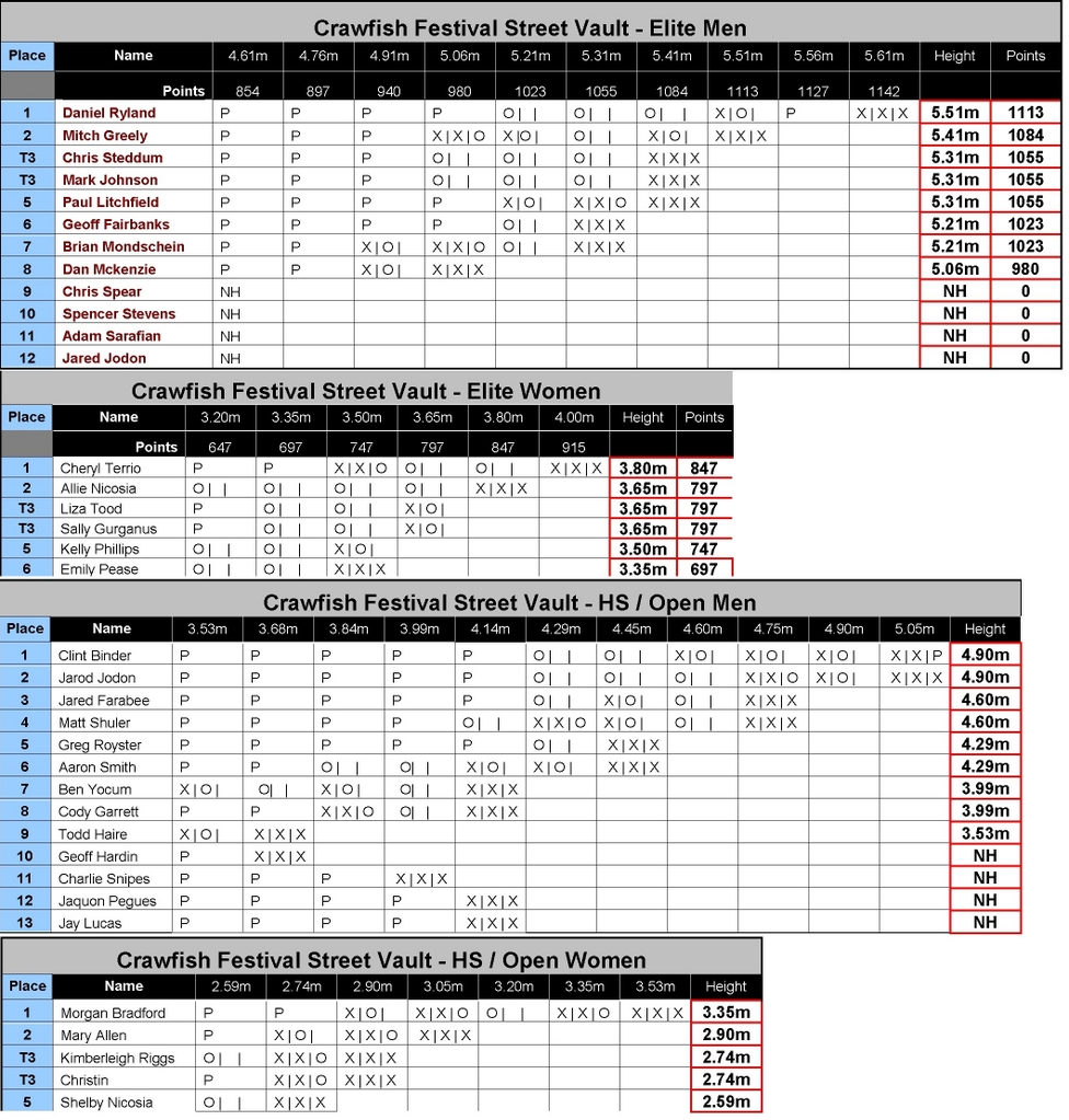 Click Here to see the Current Start List for Crawfish Street Vault 2010